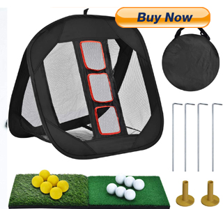 Pop-up Golf Chipping Net with Dual Turf Hitting Mat, Golf Ball and Tees Combo, Golfing Practice Net Target System, Collapsible Driving Range Target net, Swing Training Aids Backyard | Indoor | Outdoor Brand: UVGK Price: $35.95 & FREE Shipping.